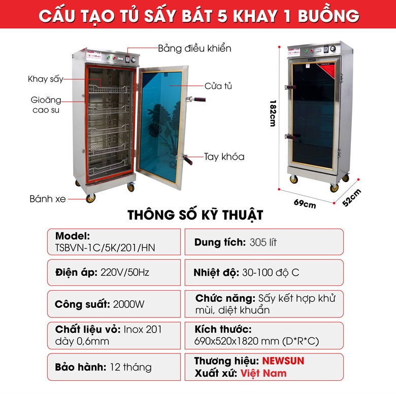 Hãy liên hệ trực tiếp với NEWSUN để biết thêm thông tin chi tiết về tủ sấy bát chén 5 khay 1 buồng cũng như các chương trình ưu đãi hấp dẫn, hoặc bạn có thể đặt hàng tủ sấy bát theo yêu cầu.