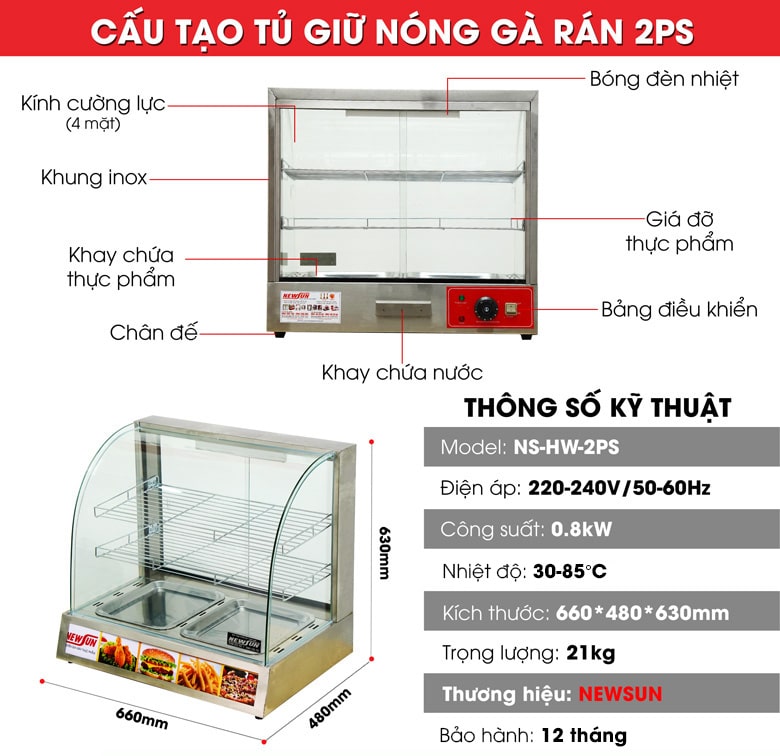 Nếu cần thêm thông tin hoặc muốn biết giá tủ giữ nóng gà rán 2PS (kính cong), bạn hãy liên hệ tới hotline để được hỗ trợ sớm nhất nhé!